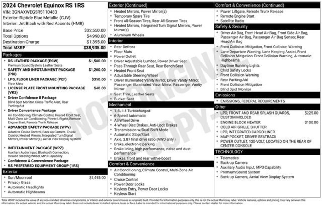 This Chevrolet Equinox has great equipment and many features including, 120-Volt Power Outlet, 2 Rear USB Charging-Only Ports, 2 USB Data Ports, 2 USB Data Ports w/SD Card Reader, Adaptive Cruise Control, Advanced Safety Package, Bluetooth® For Phone, Bose Premium 7-Speaker Audio System Feature, Driver Seatback Map Pocket, HD Surround Vision, Heated Steering Wheel, Infotainment Package, Outside Heated Power-Adjustable Mirrors, Perforated Leather-Appointed Seat Trim, Preferred Equipment Group 1RS, Radio: Chevrolet Infotainment 3 Plus System, RS Leather Package, Safety & Infotainment Package, SiriusXM.Riptide Blue Metallic 2024 Chevrolet Equinox RS AWD 4D Sport Utility 1.5L DOHC 24/30 City/Highway MPG Certified.Chevrolet Certified Pre-Owned Details:* 172 Point Inspection* Transferable Warranty* Roadside Assistance* Vehicle History* 24 months/24,000 miles (whichever comes first) Certified Pre-Owned Scheduled Maintenance Plan and 3 days/150 miles (whichever comes first) Vehicle Exchange Program. SiriusXM 3-month trial subscription.* Powertrain Limited Warranty: 72 Month/100,000 Mile (whichever comes first) from original in-service date* Warranty Deductible: $0* Limited Warranty: 12 Month/12,000 Mile (whichever comes first) from certified purchase dateCome see why more people choose our Community!