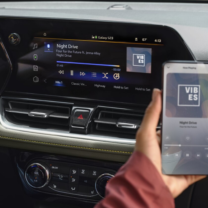 The 2026 Chevy Trailblazer cabin centers around an 11-inch diagonal color touchscreen that serves as the hub for entertainment and vehicle controls. Standard wireless Apple CarPlay and Android Auto capability ensures seamless smartphone integration, while available features like wireless charging and a 120-volt power outlet add convenience.