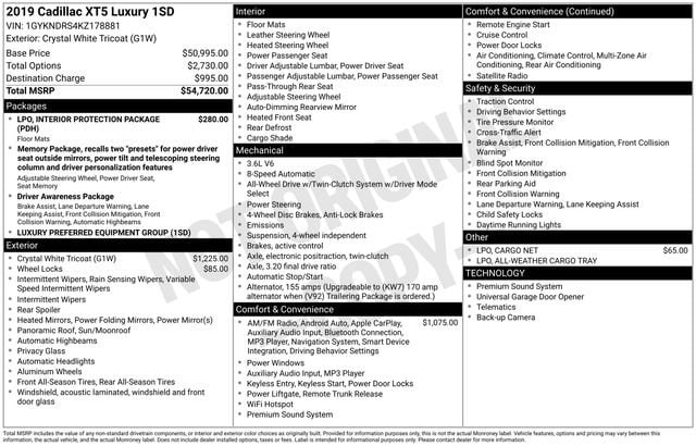 This Cadillac XT5 has great equipment and many features including.Crystal White Tricoat 2019 Cadillac XT5 Luxury AWD 4D Sport Utility 3.6L V6 DI VVTCome see why more people choose our Community!
