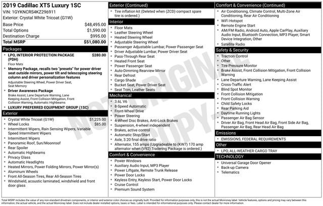 This Cadillac XT5 has great equipment and many features including, 155 Amp Alternator, All-Weather Cargo Tray (LPO), All-Weather Floor Mats, Automatic Dual-Zone Climate Control, Body-Color Heated Power-Adjustable Outside Mirrors, Halogen Headlamps, Interior Protection Package (LPO), Luxury Package 1SC, Teen Driver.