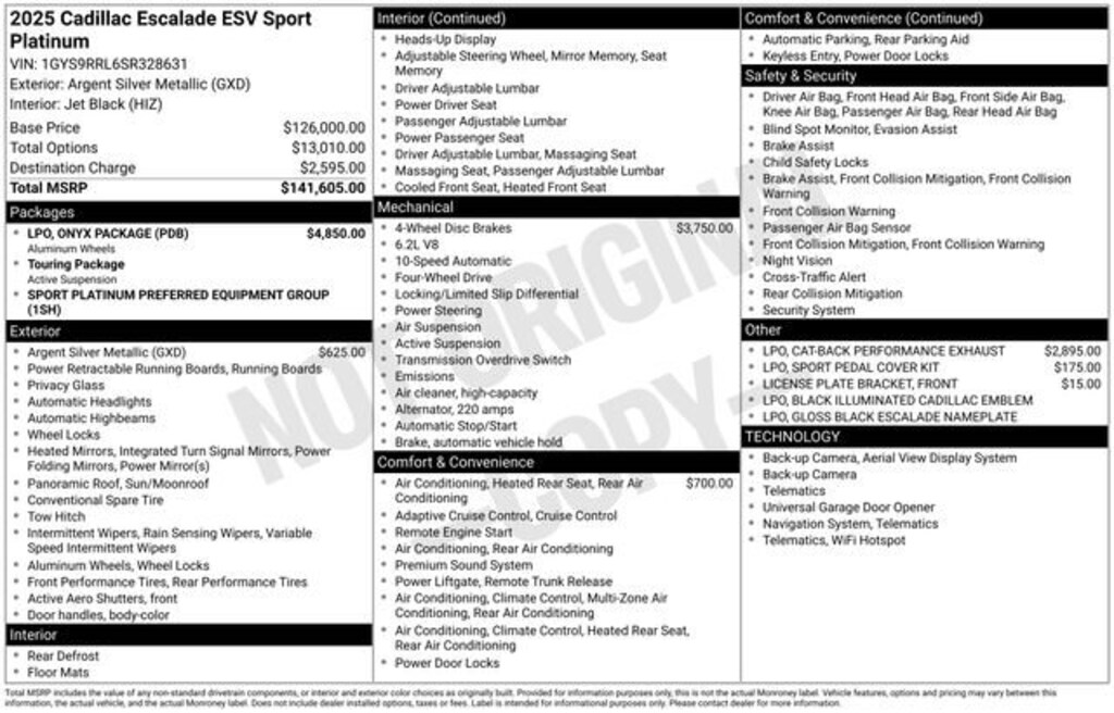 This Cadillac Escalade ESV has great equipment and many features including.Argent Silver Metallic 2025 Cadillac Escalade ESV Sport Platinum 4WD 4D Sport Utility 6.2L V8Come see why more people choose our Community!