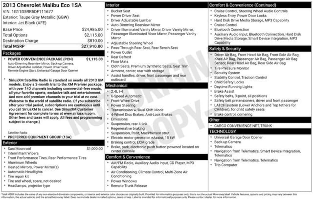 This Chevrolet Malibu has great equipment and many features including, Four wheel independent suspension, Heated door mirrors, Illuminated entry, Power door mirrors, Power Sunroof, Rear Vision Camera, Speed control, Traction control.
