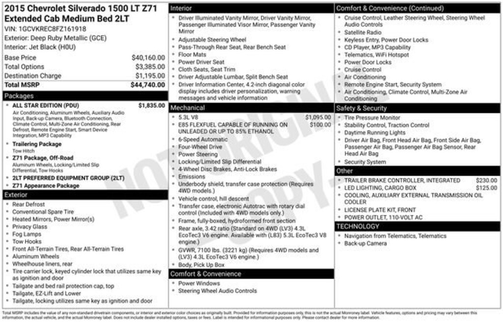 Deep Ruby Metallic 2015 Chevrolet Silverado 1500 LT LT2 4WD 4D Double Cab EcoTec3 5.3L V8