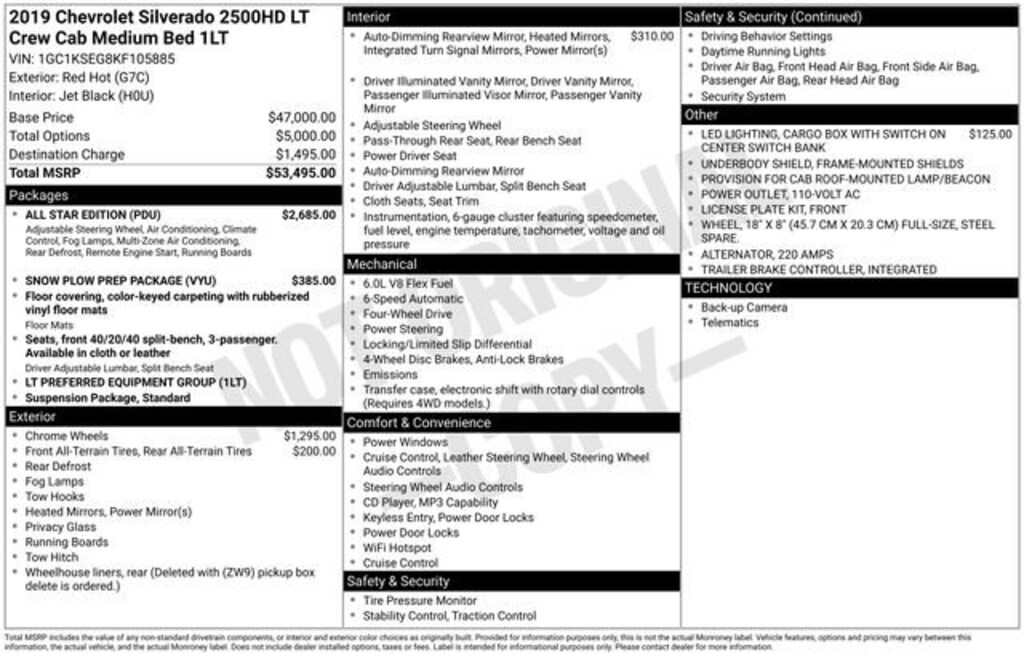 Red Hot 2019 Chevrolet Silverado 2500HD LT 4WD 4D Crew Cab Vortec 6.0L V8 SFI Flex Fuel VVT