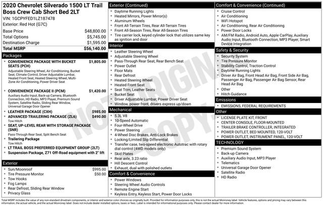 Red Hot 2020 Chevrolet Silverado 1500 LT Trail Boss 4WD 4D Crew Cab EcoTec3 5.3L V8