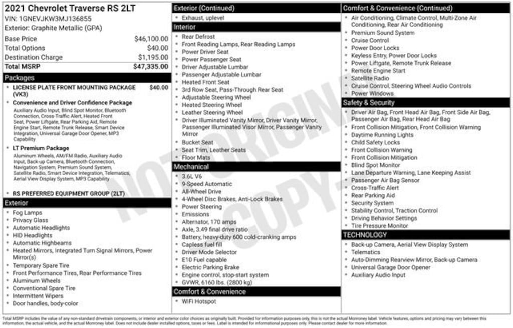 This Traverse RS comes equipped with an impressive array of features, including: