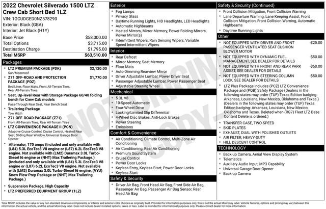 Black 2022 Chevrolet Silverado 1500 LTZ 4WD 4D Crew Cab EcoTec3 5.3L V8