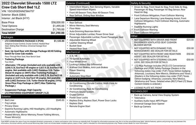 Black 2022 Chevrolet Silverado 1500 LTZ 4WD 4D Crew Cab EcoTec3 5.3L V8
