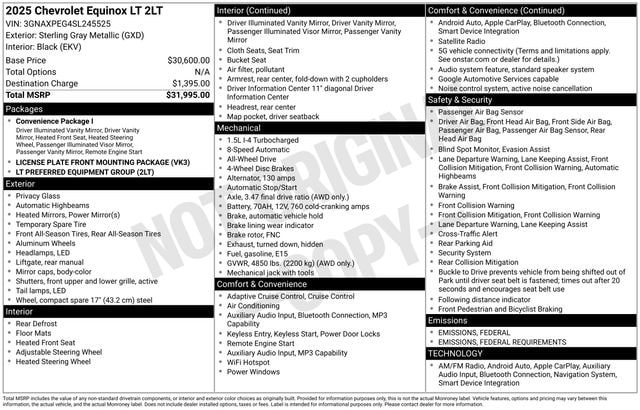 Chevrolet has thoughtfully designed the Equinox to cater to your everyday needs. With ample cargo space, flexible seating configurations, and a host of connectivity features, this SUV is ready to adapt to your lifestyle. Whether you're commuting to work, embarking on a family road trip, or tackling your weekend adventures, the 2025 Chevrolet Equinox LT is a versatile companion that will exceed your expectations.
