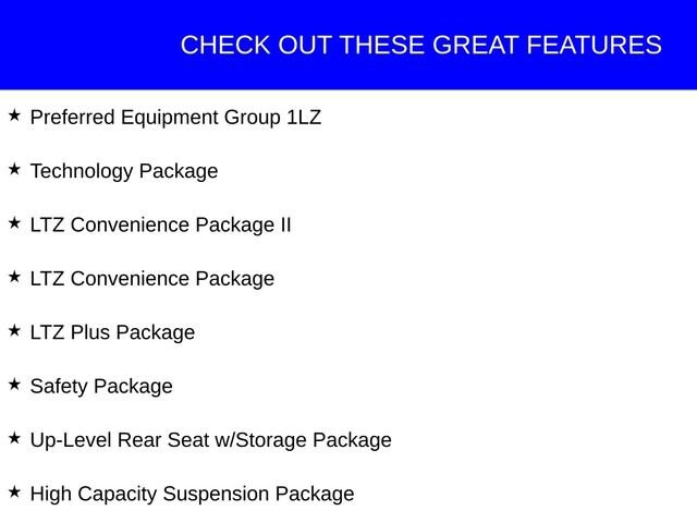 This Chevrolet Silverado 1500 has great equipment and many features including, 10-Way Power Driver Seat w/Lumbar, 10-Way Power Passenger Seat Adjuster w/Lumbar, 12.3 Multicolor Reconfigurable Digital Display, 120-Volt Interior Power Outlet, 15 Diagonal Multicolor Head-Up Display, 2nd Row Heated Outboard Seats, Adaptive Cruise Control, Auto-Dimming Inside Rear-View Mirror, Auto-Locking Rear Differential, Bed View Camera, Bluetooth® For Phone, Chrome Mirror Caps, Color-Keyed Carpeting Floor Covering, Deep-Tinted Glass, Driver Memory, Dual Exhaust w/Black Exhaust Tips, Dual Rear USB Ports (Charge Only), Electric Rear-Window Defogger, Electronic Cruise Control, Front Frame-Mounted Black Recovery Hooks, Front LED Fog Lamps, Front Rain-Sensing Wipers, Front Rubberized Vinyl Floor Mats, Heated Driver & Front Outboard Passenger Seats, Heated Steering Wheel, Heavy-Duty Air Filter, High Capacity Suspension Package, Hill Descent Control, Hitch Guidance w/Hitch View, In-Vehicle Trailering System App, Integrated Trailer Brake Controller, Keyless Open & Start, LED Cargo Area Lighting, LTZ Convenience Package, LTZ Convenience Package II, LTZ Plus Package, Off-Road Suspension, OnStar Services Capable, Outside Heated Power-Adjustable Mirrors, Power Front Passenger Windows w/Express Up/Down, Power Front Windows w/Driver Express Up/Down, Power Rear Windows w/Express Down, Power Sliding Rear Window w/Rear Defogger, Power Tailgate, Preferred Equipment Group 1LZ, Rear Camera Mirror, Rear Rubberized-Vinyl Floor Mats, Rear Wheelhouse Liners, Remote Vehicle Starter System, Safety Package, SiriusXM w/360L Trial Subscription, Standard Tailgate, Steering Wheel Audio Controls, Technology Package, Teen Driver, Theft Deterrent System (Unauthorized Entry), Tire Pressure Monitoring System, Trailering Package, Universal Home Remote, Up-Level Rear Seat w/Storage Package, Wrapped Steering Wheel, Z71 Off-Road Package.