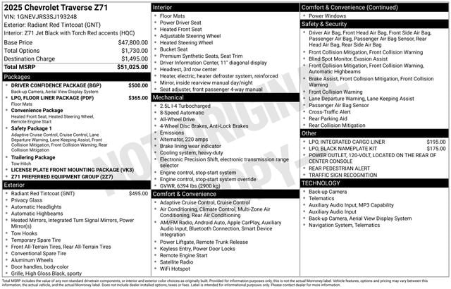 The 2025 Chevrolet Traverse Z71 is a remarkably capable and well-equipped SUV that's ready to elevate your driving experience. With its impressive performance, advanced technology, and premium features, this Traverse is poised to exceed your expectations and become the perfect companion for your adventures.