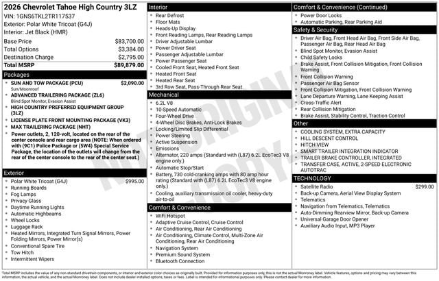 Polar White Tricoat 2026 Chevrolet Tahoe High Country 4WD 4D Sport Utility EcoTec3 6.2L V8