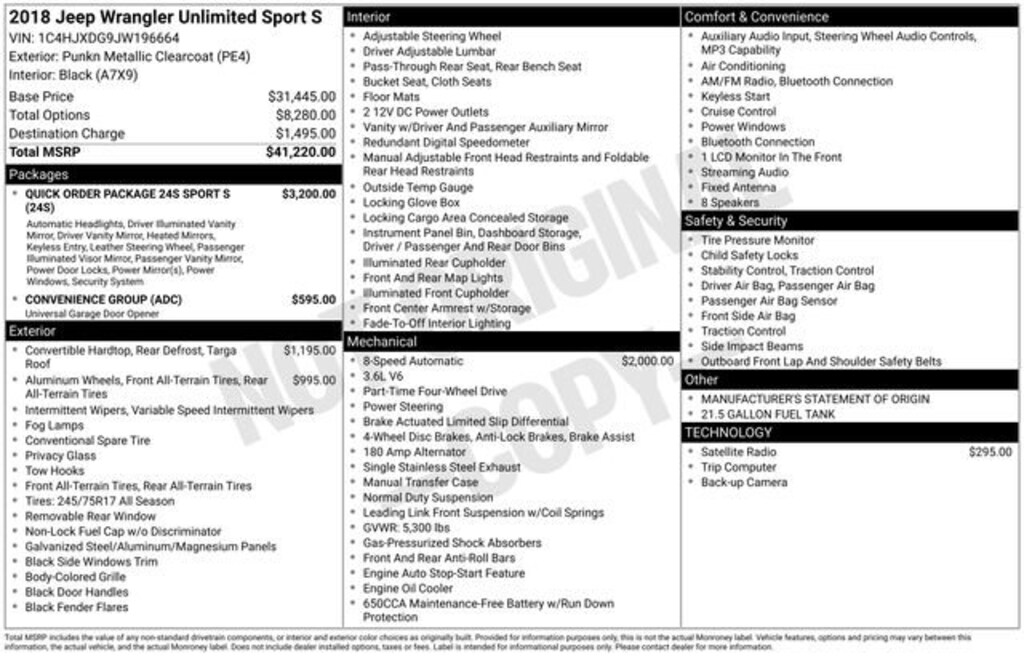 Punkn Metallic Clearcoat 2018 Jeep Wrangler Unlimited Sport S 4WD 4D Sport Utility 3.6L V6 24V VVT