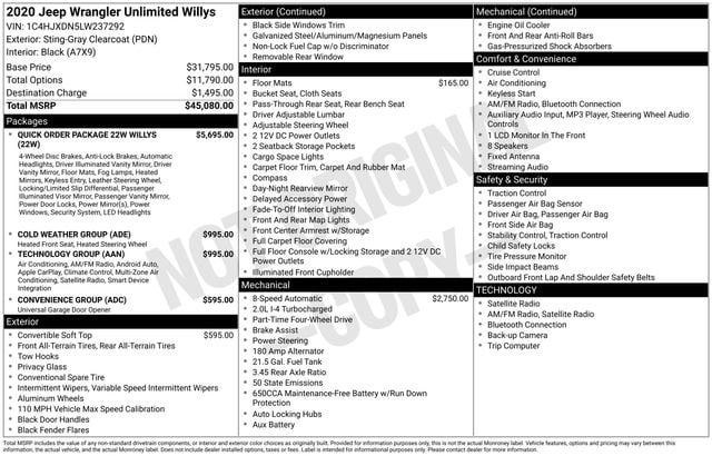 Sting-Gray Clearcoat 2020 Jeep Wrangler Unlimited Willys 4WD 4D Sport Utility 2.0L I4 DOHC