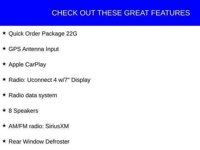 This Jeep Wrangler has great equipment and many features including, 8 Speakers, Air Conditioning, AM/FM radio: SiriusXM, Apple CarPlay, Apple CarPlay/Android Auto, Aux Battery, Black 3-Piece Hard Top, Freedom Panel Storage Bag, Garage door transmitter, Google Android Auto, GPS Antenna Input, Heated door mirrors, Leather steering wheel, No Soft Top, Power door mirrors, Quick Order Package 22G, Radio data system, Radio: Uconnect 4 w/7 Display, Rear Window Defroster, Rear Window Wiper/Washer, Stop-Start Dual Battery System.