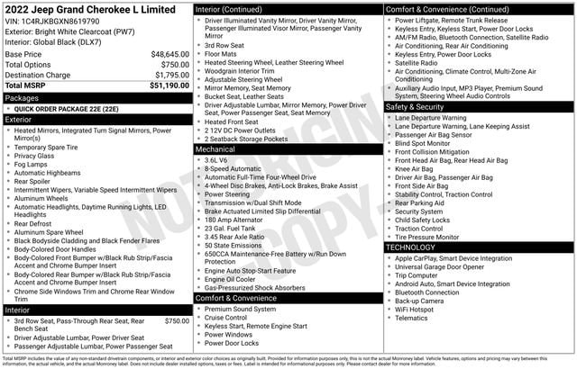 Bright White Clearcoat 2022 Jeep Grand Cherokee L Limited 4WD 4D Sport Utility 3.6L V6 24V VVT