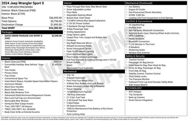 This Jeep Wrangler has great equipment and many features including.Black Clearcoat 2024 Jeep Wrangler Sport S 4WD 4D Sport Utility 3.6L V6 24V VVTCome see why more people choose our Community!