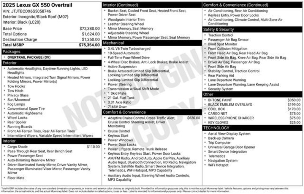 Black 2025 Lexus GX 4WD 4D Sport Utility 3.4L V6