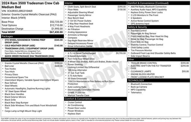 Granite Crystal Metallic Clearcoat 2024 Ram 3500 Tradesman 4WD 4D Crew Cab Cummins 6.7L I6 Turbodiesel