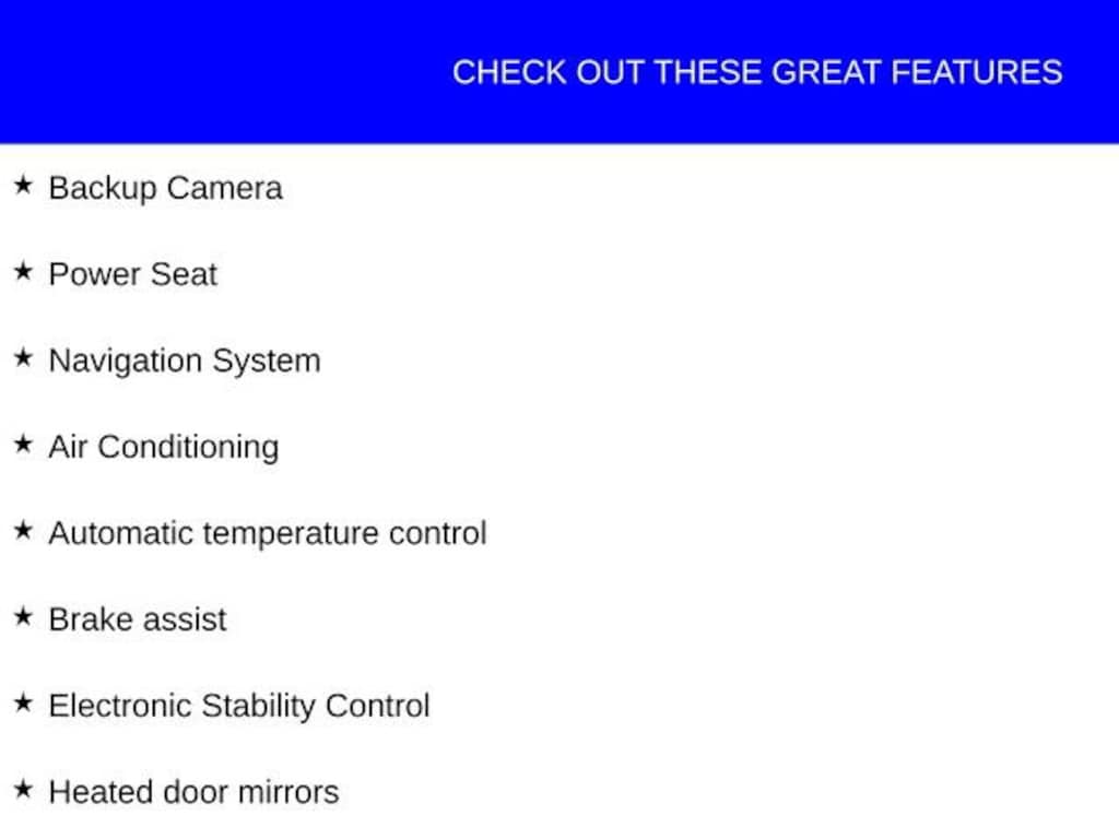 This Toyota Tundra has great equipment and many features including, Backup Camera, Power Seat, Air Conditioning, Automatic temperature control, Brake assist, Electronic Stability Control, Heated door mirrors, Navigation System, Rear step bumper.